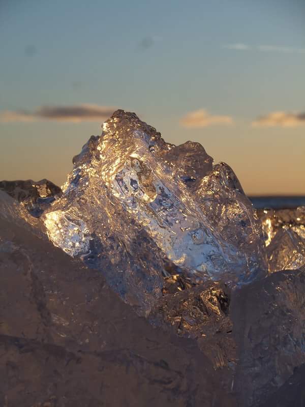A pillar of light, like a great crystal wand, wide at the bottom, gently sloping inwards towards the heights until three smaller faces met like the top of a pyramid what seemed like at least a hundred meters up from where she stood manifested through the glimmering snow crystals.